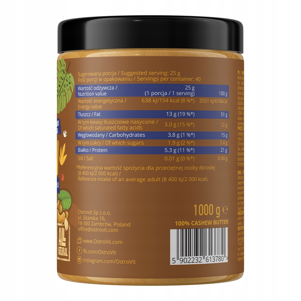 Głębia smaku, 100% satysfakcji i gwarancja najwyższej jakości - OstroVit 100% Cashew Butter.