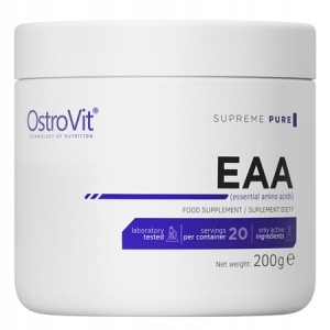OstroVit EAA to suplement diety w proszku, który uzupełnia naszą dietę w niezbędne aminokwasy egzogenne, których organizm człowieka nie jest w stanie samodzielnie syntetyzować.