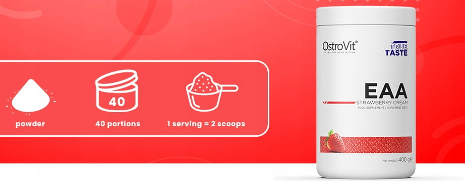 OstroVit EAA to suplement diety w proszku, który uzupełnia naszą dietę w niezbędne aminokwasy egzogenne, których organizm człowieka nie jest w stanie samodzielnie syntetyzować.