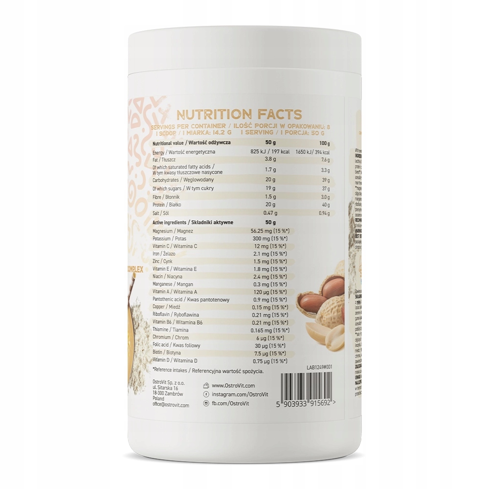 - To preparat dostępny w postaci proszku o pysznym smaku orzeszków ziemnych.