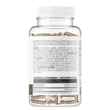 - Najwyższa porcja Biotyny w jednej kapsułce = 2,5 mg