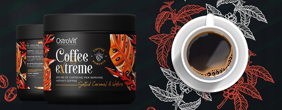 Kofeinę - pochodzącą z ziaren Robusty. Kofeina jest alkaloidem wykazującym działanie pobudzające, dodające energii oraz podnoszące wydajność, dlatego tak chętnie dodawana jest do wielu napojów i suplementów diety.