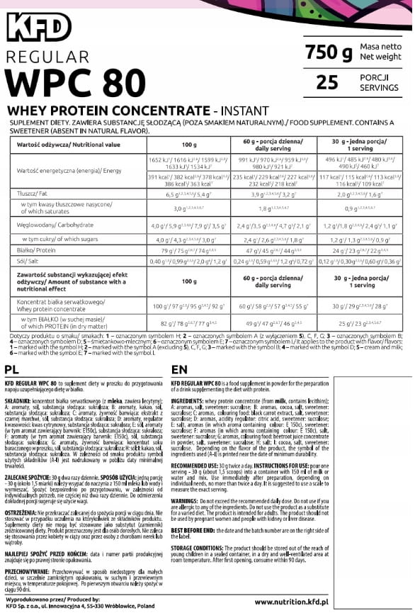 KFD BIAŁKO ODŻYWKA BIAŁKOWA WPC 80 REGULAR INSTANT 750G SMAK: WANILIA-BANAN