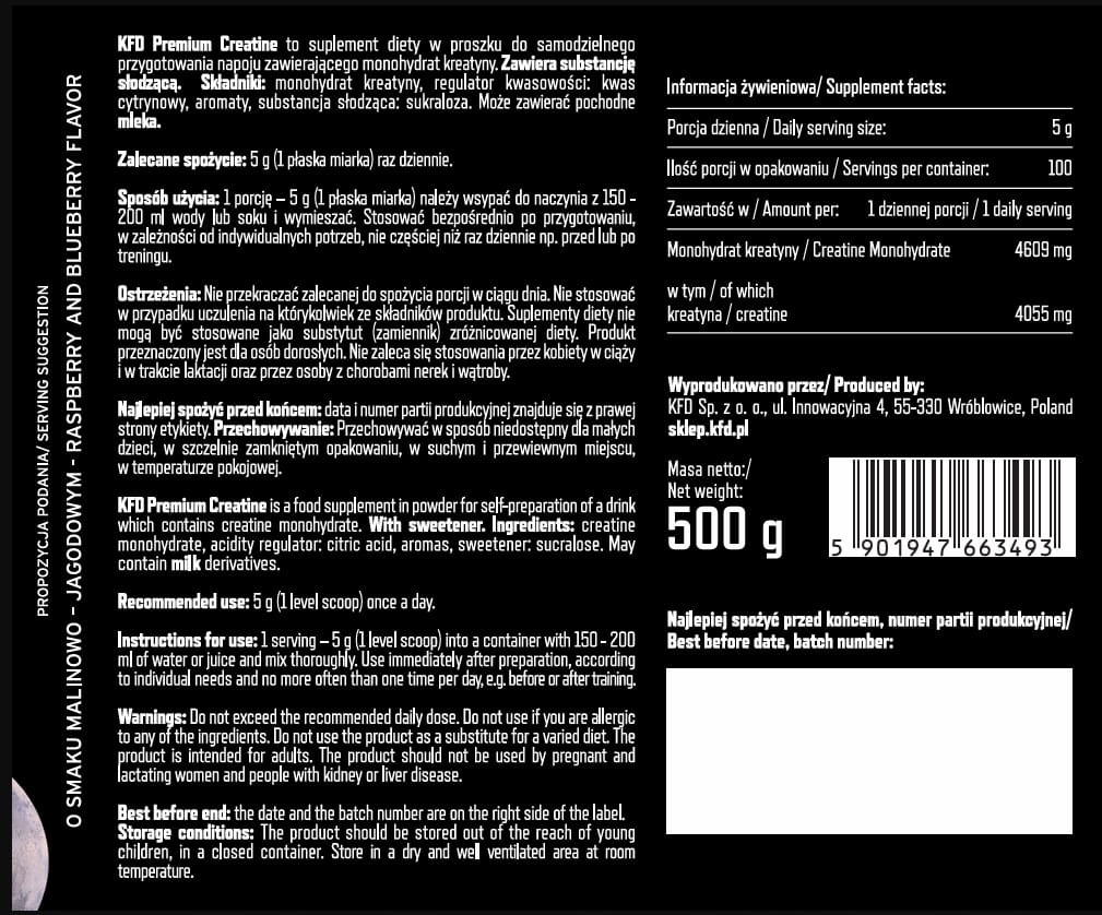 KFD Creatine 500g Malina Jagoda KREATYNA mono MONOHYDTRAT 500 g