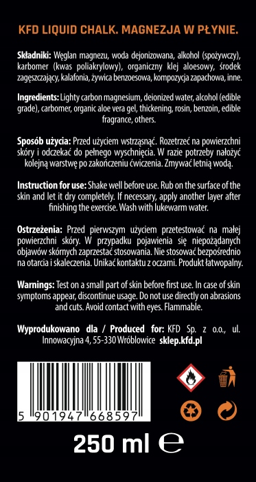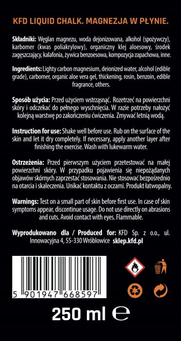 KFD Liquid Chalk, to aż 250 ml wysokiej jakości magnezji w płynie.