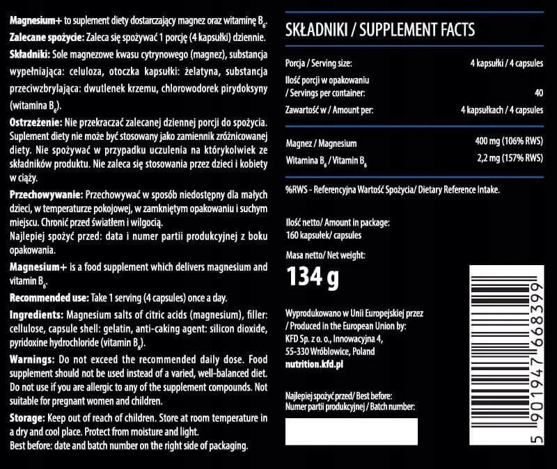 KFD MAGNESIUM+ 160 KAPSUŁEK