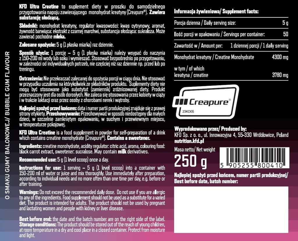 KFD ULTRA CREATINE – CREAPURE o smaku GUMY BALONOWEJ Kreatyna monohydrat