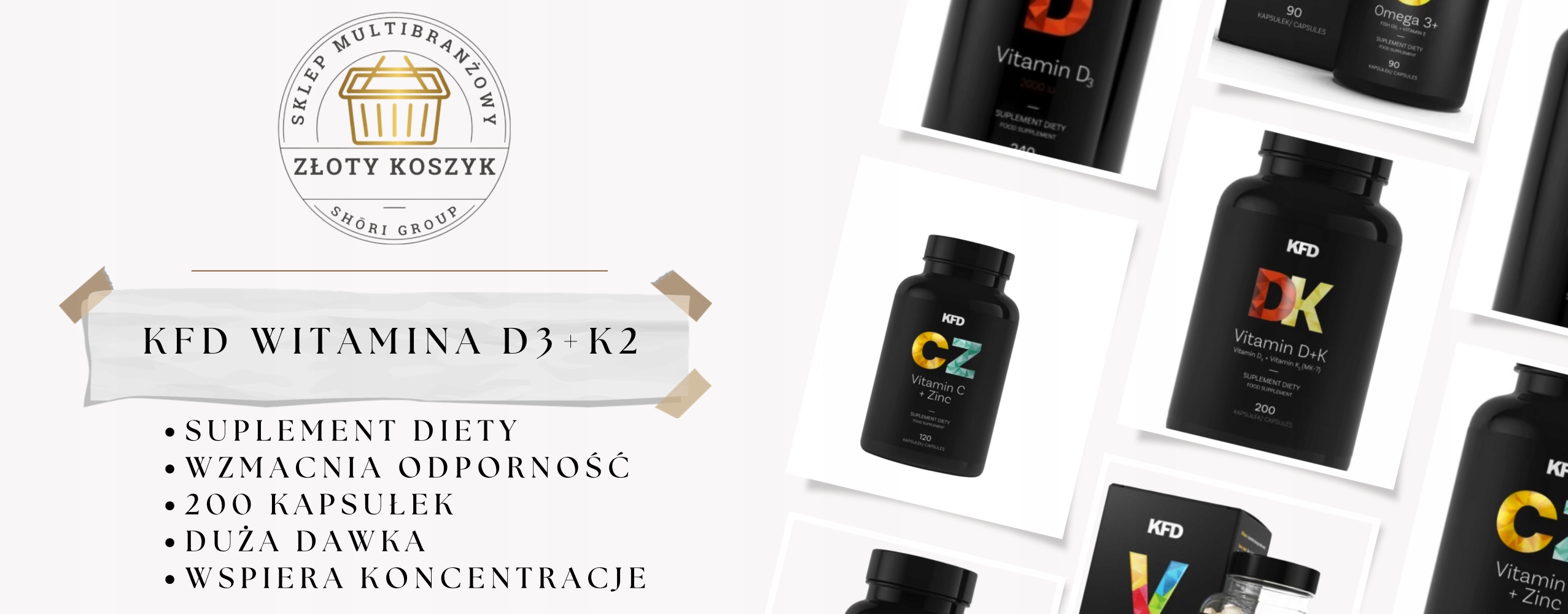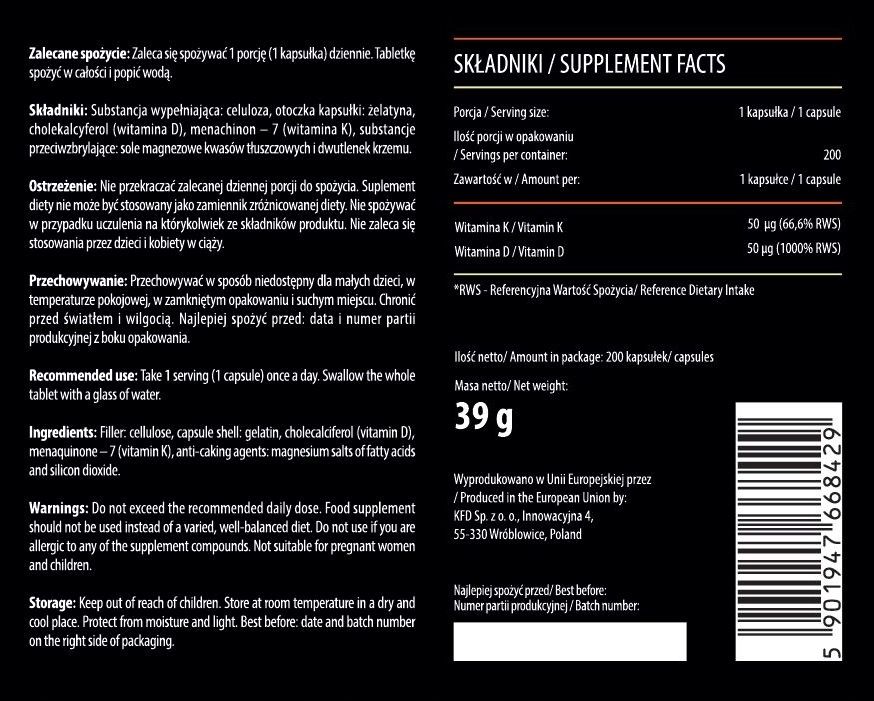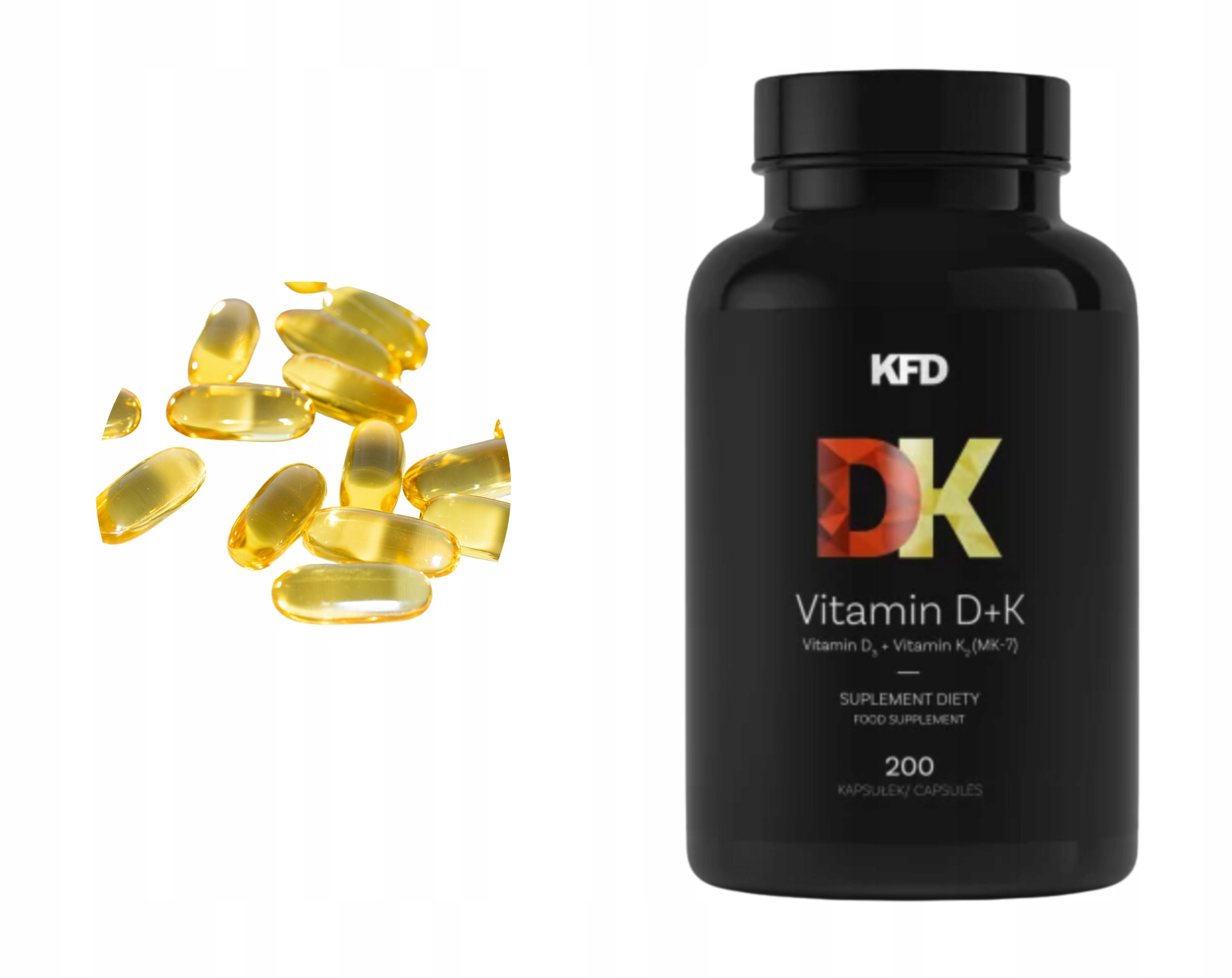 KFD Witamina D+K to suplement diety dostarczający aż 2000 j.m. (50 mcg) witaminy D3 oraz 50 mcg witaminy K2 (menachinon 7) w 1 kapsułce