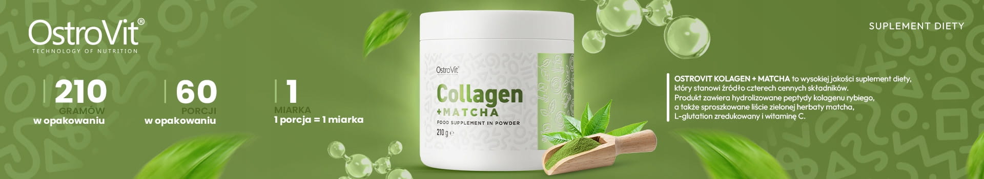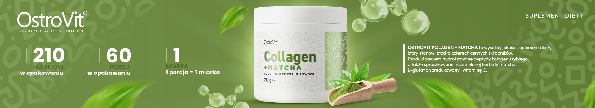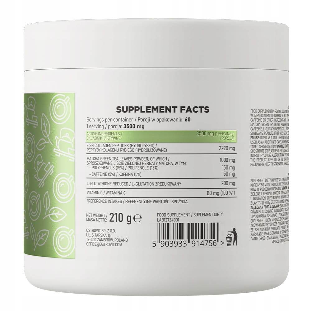 KOLAGEN MATCHA COLLAGEN RYBI GLUTATION OSTROVIT WITAMINA C POLIFENOLE 210G
