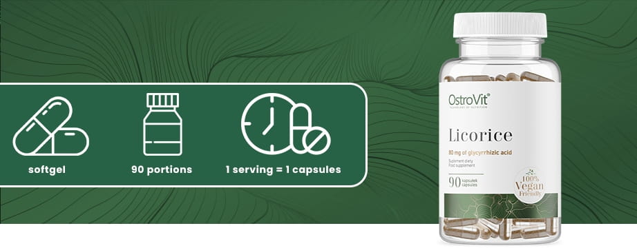 OstroVit Licorice VEGE to zestaw 90 kapsułek, które wystarczą na 3 miesiące regularnej suplementacji.