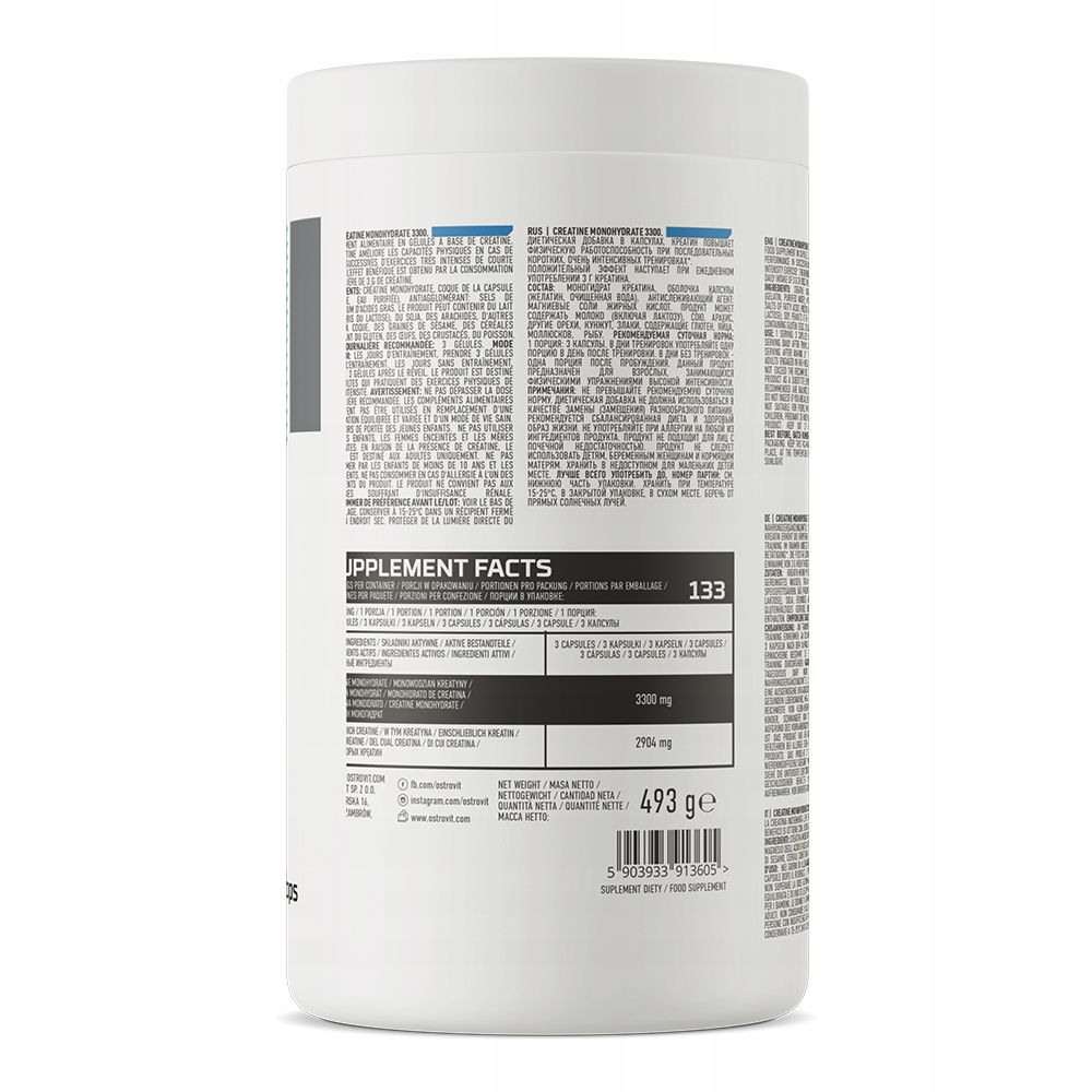 OstroVit Monohydrat Kreatyny 3300 mg to wysokiej jakości suplement diety, który stanowi cenne źródło kreatyny w postaci monohydratu. To preparat dostępny w formie łatwych do połknięcia kapsułek, stworzony z myślą o sportowcach i osobach aktywnych fizycznie.