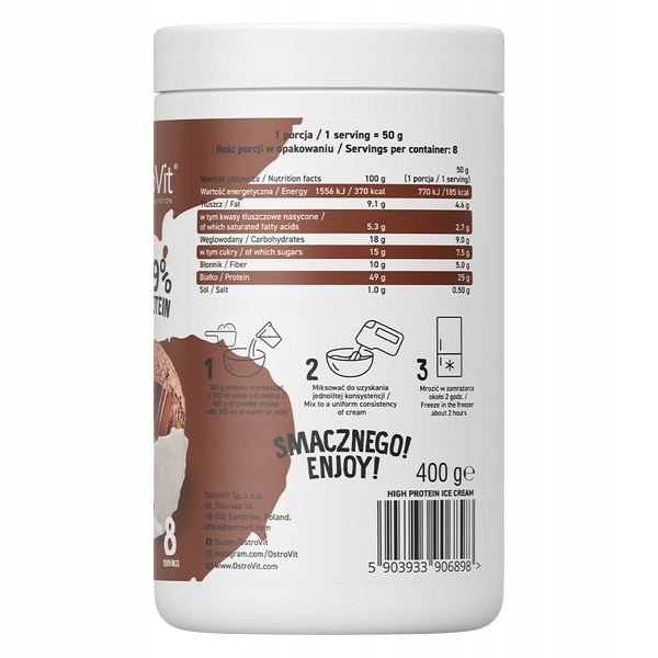 LODY CZOCOLATE PROTEINOWE PROTEIN 52% OSTROVIT 400G HIGI PROTEIN ICE CREAM
