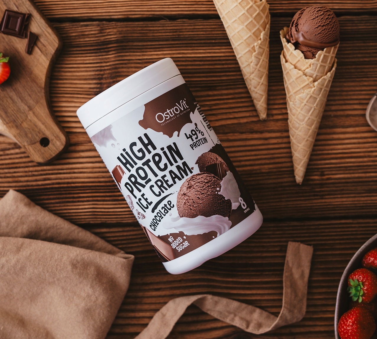 Poszukujesz smacznych lodów z dobrym składem? Chcesz bez wyrzutów sumienia zjeść upragniony deser? Postaw na nasz rewolucyjny produkt – OstroVit Lody wysokobiałkowe o smaku czekoladowym.