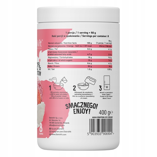 LODY PROTEINOWE PROTEIN 52% OSTROVIT 400G HIGI PROTEIN ICE CREAM TRUSKAWKA