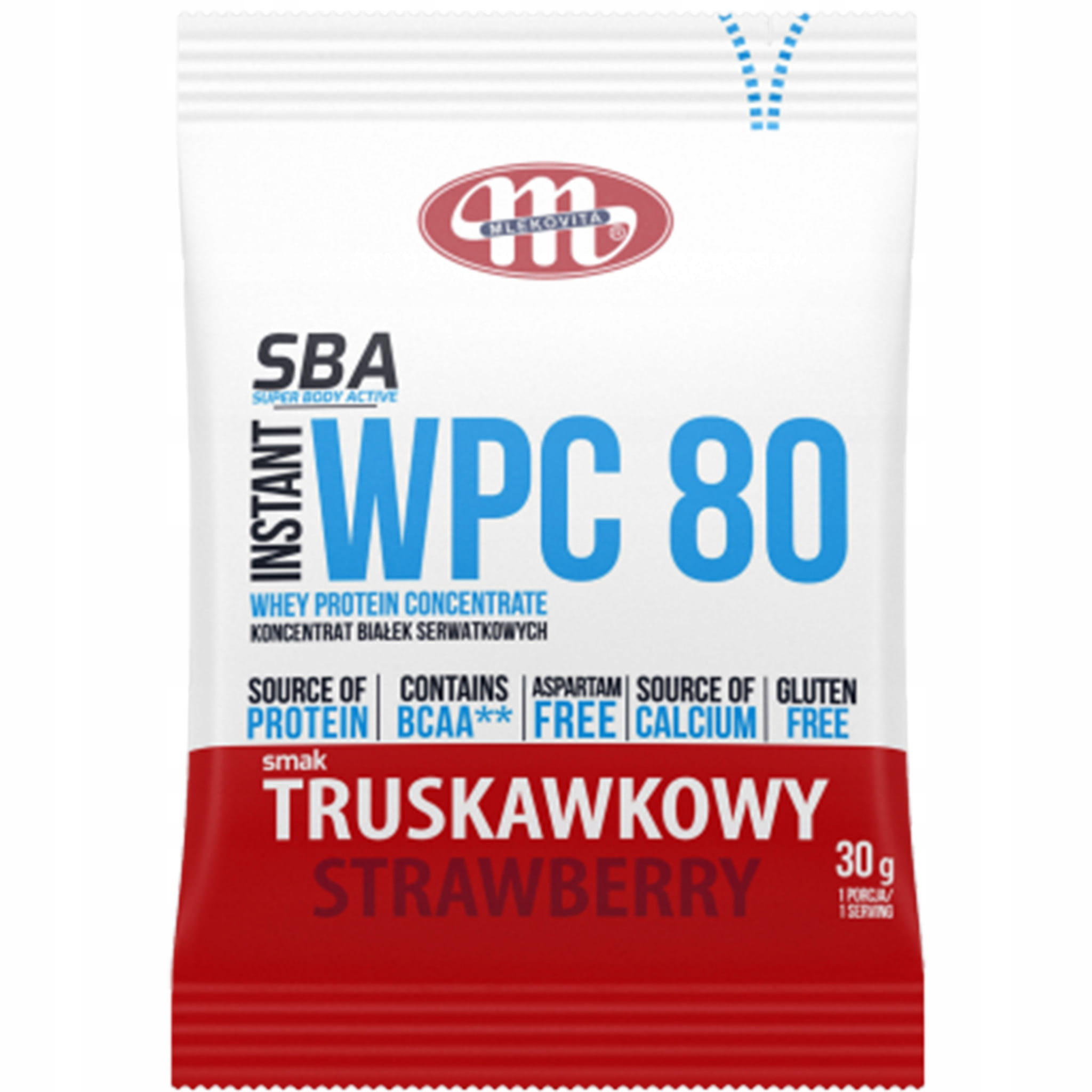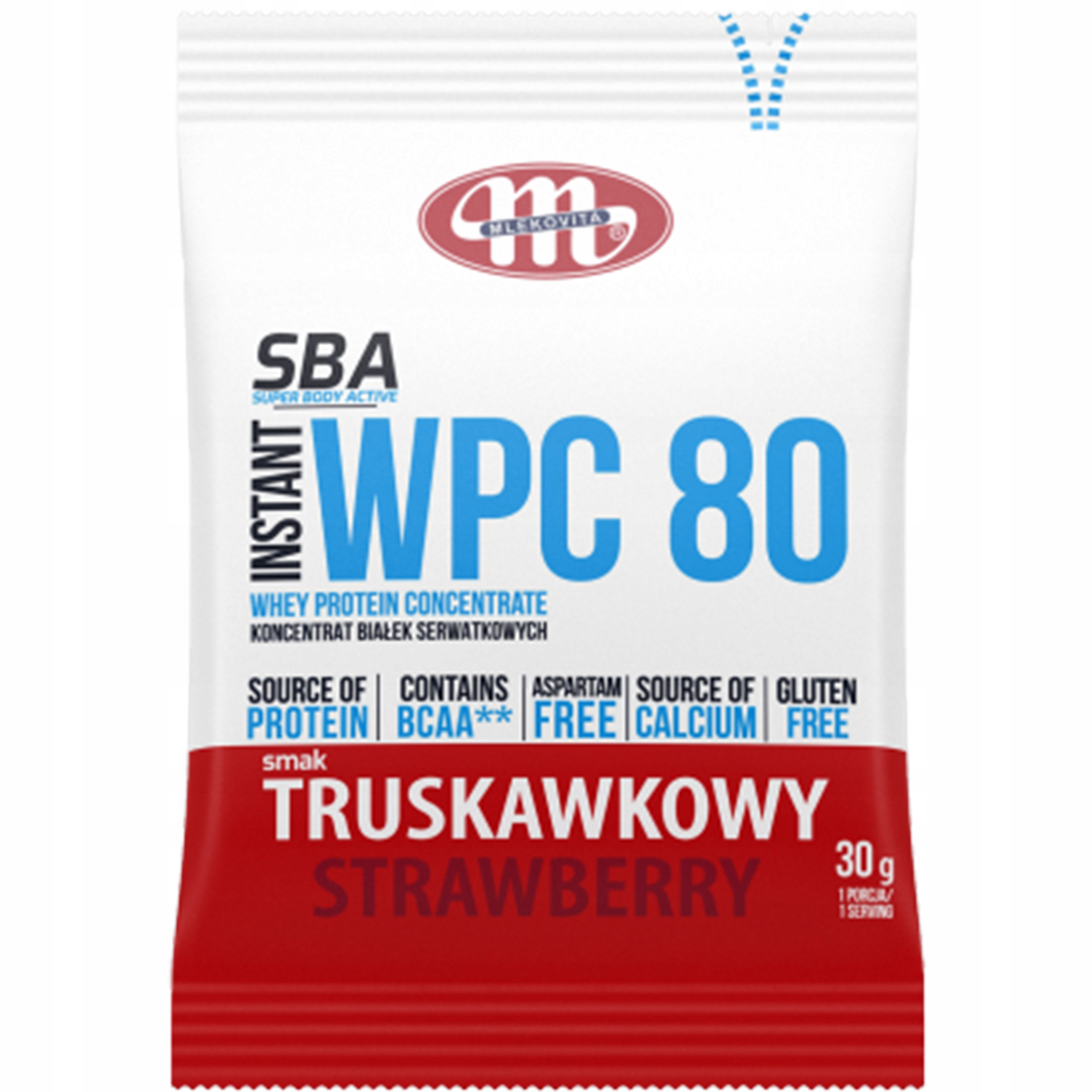 MLEKOVITA koncentrat białka - WPC Mlekovita proszek 30 g smak truskawkowy