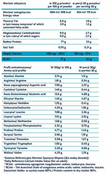 Do shakera wlać 250ml mleka odtłuszczonego oraz wsypać jedną porcję (30 g) - 4 łyżki odżywki białkowej WPC 80. Całość dokładnie wymieszać. Najlepiej spożywać dwie porcje (60g) dziennie.