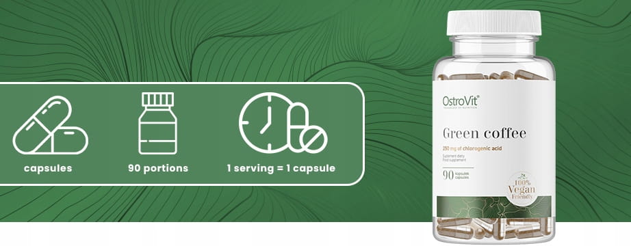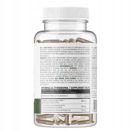 - 90 kapsułek wegańskich z ekstraktem z zielonej kawy w opakowaniu