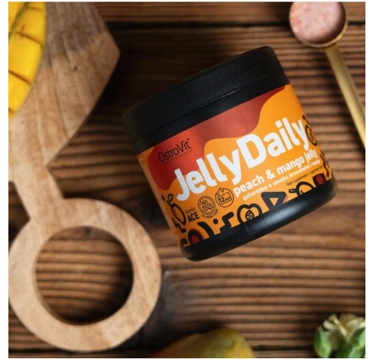 Galaretki to desery, które kocha każdy. Przypomnij sobie beztroskie dzieciństwo i przepyszne desery owocowe z galaretką, torty, ciasta i najrozmaitsze pyszności. Powiesz, że to prawdziwa bomba kaloryczna, a każdy kolejny taki deser to krok w tył w Twoich postępach o wymarzoną sylwetkę. Jednak gdyby taka galaretka była pozbawiona cukru, multum kalorii, a również zawierała witaminy i prezentowała się w szerokim wyborze smakowym?? To właśnie jest OstroVit Jelly Daily. Galaretki kompletne po, które sięgniesz w każdej chwili gdy tylko poczujesz głód. To galaretki, które zaspokoją Twoje najskrytsze potrzeby zjedzenia czegoś słodkiego bez wyrzutów sumienia. Z OstroVit Jelly Daily i jej pełnią smaku stworzysz najpyszniejsze desery, zjesz ją z owocami, lub przekąsisz deser kiedy podczas diety "redukcyjnej" najzwyczajniej w świecie będziesz miał ochotę zjeść coś smakowitego!