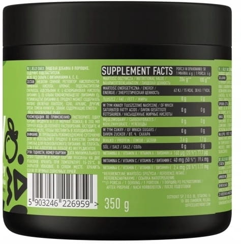 ⭐️ OstroVit Jelly Daily ⭐️ to przepyszne, niskokaloryczne, bez cukrowe oraz witaminowe galaretki, które zachwycą swoim smakiem i aromatem każdego głodomora. Szeroka gama smaków zadowoli najwybredniejszych smakoszy, a ich minimalna pula kalorii sprawi, że z wielką chęcią i bez wyrzutów sumienia skusisz się na kolejną porcję deseru. Powstrzymaj głód i uśmiechnij się razem z OstroVit Jelly Daily. Suplement diety w proszku. Zawiera substancje słodzące. Galaretka bez cukru z witaminami A, C, E.