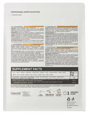 OstroVit Monohydrat Kreatyny to najwyższej jakości jednoskładnikowy suplement monohydratu kreatyny o doskonałym, mikronizowanym poziomie.