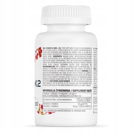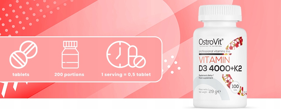 OstroVit Vitamin D3 4000 + K2 100 szt to suplement o podwójnym działaniu – suplementacja korzystna dla serca i witaminy wpływające na zdrowie kości.