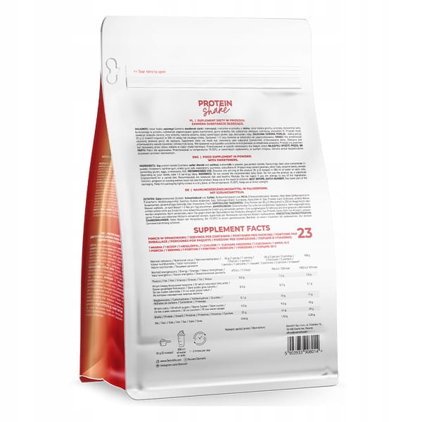 - Źródło białka - jedna porcja suplementu diety dostarcza do organizmu 21 g protein pochodzących z izolatu białka sojowego i izolatu białka grochu.