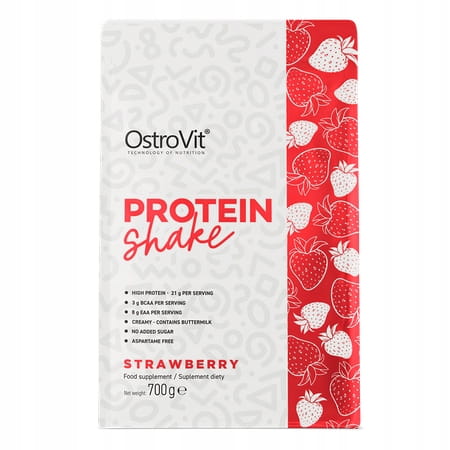 OstroVit Protein Shake to wysokiej jakości suplement diety, który stanowi źródło białka. To preparat dostępny w postaci proszku o pysznym, truskawkowym smaku, który nie zawiera dodatku cukru. To produkt stworzony z myślą o osobach aktywnych fizycznie, którym zależy na uzupełnieniu codziennej diety w cenny makroskładnik.