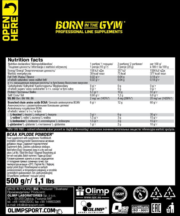 BCAA Xplode® to 6g farmaceutycznie czystych, super mikronizowanych aminokwasów BCAA zestawionych w optymalnej proporcji 2: 1: 1. (L-leucyna, L-walina i L-izoleucyna) w połączeniu z L-glutaminą.