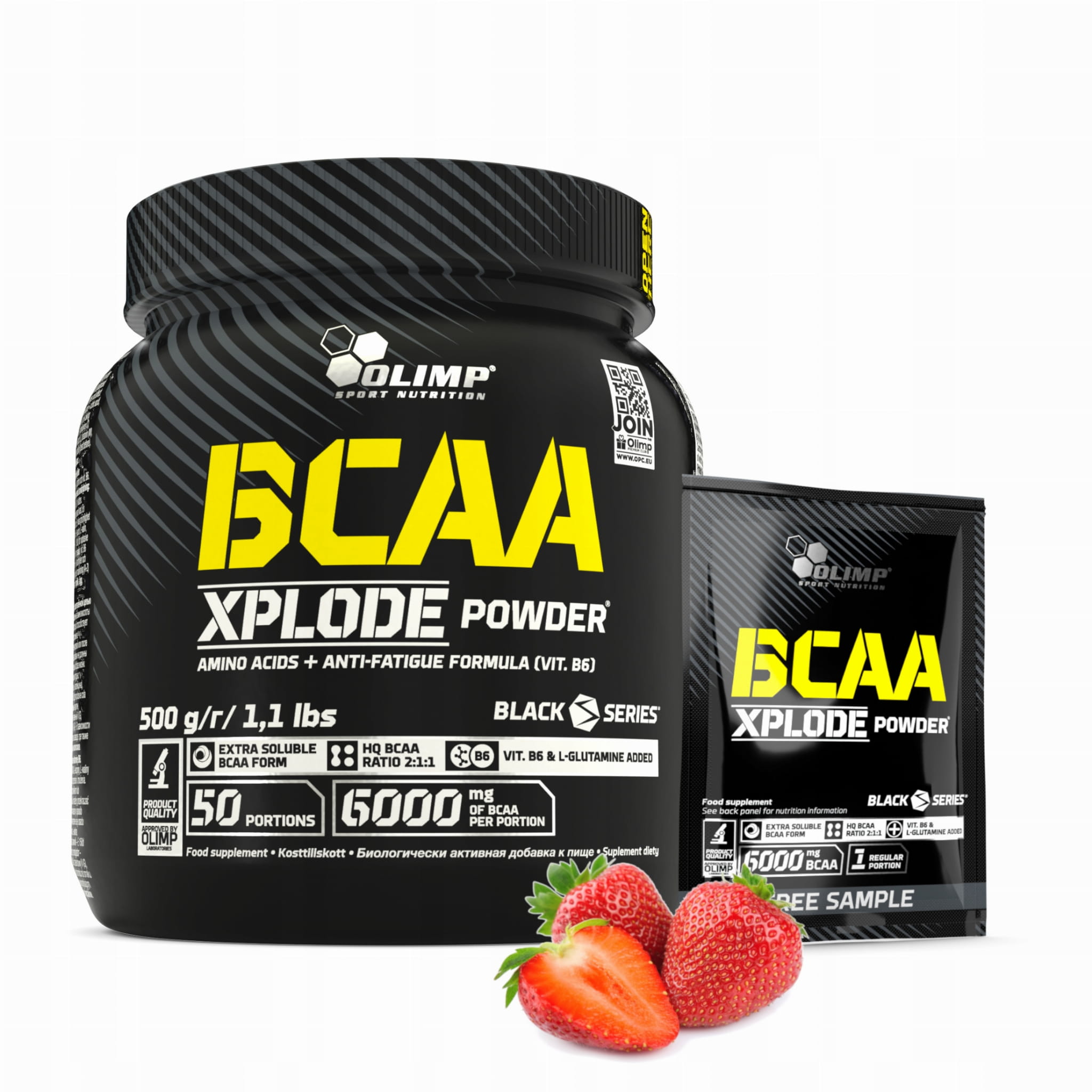 OLIMP BCAA Xplode Powder 500 g Aminokwasy Regeneracja TRUSKAWKA