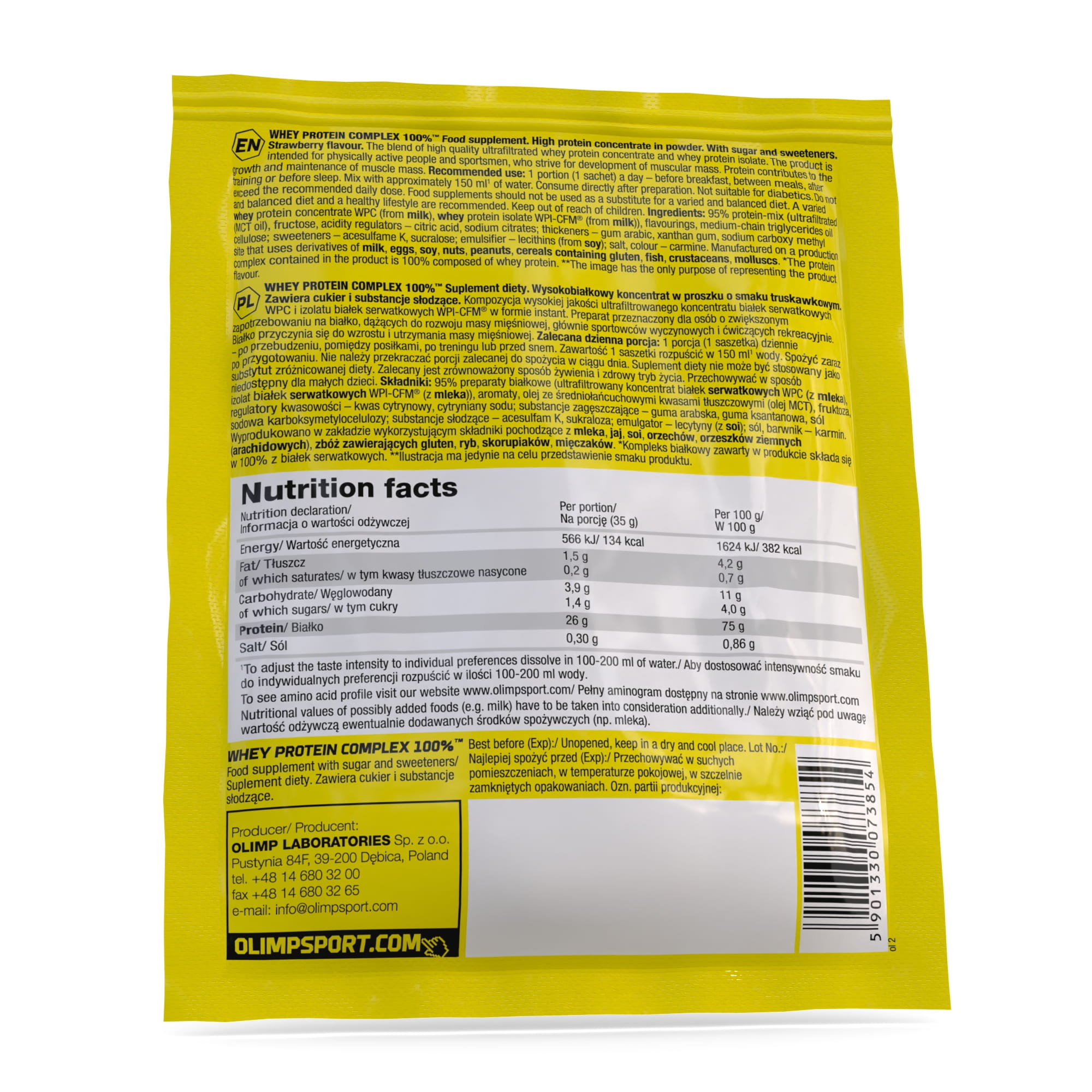 Whey Protein Complex 100% w wygodnej saszetce to suplement diety marki Olimp Sport Nutrition przeznaczony dla osób o zwiększonym zapotrzebowaniu na białko, dążących do rozwoju masy mięśniowej, głównie sportowców wyczynowych i ćwiczących rekreacyjnie. Białko przyczynia się do wzrostu lub utrzymania masy mięśniowej.