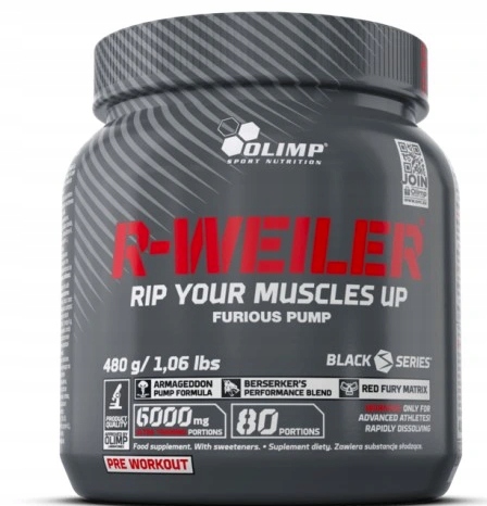 Olimp R-Weiler® to jedna z topowych propozycji marki Olimp Sport Nutrition, stworzona została z myślą o profesjonalnych zawodnikach i sportowych wyjadaczach dyscyplin siłowych i wytrzymałościowych, którzy wiedzą, czym jest ciężka praca na formą i sylwetką. Suplement diety stanowi mieszankę wysokiej jakości składników aktywnych, w tym m.in.:
