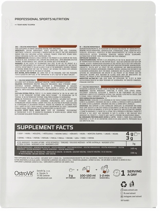 OstroVit Creatine Monohydrate to najwyższej jakości monohydrat kreatyny, który wielokrotnie potęguje anaboliczne, ergogeniczne i antykataboliczne działanie kreatyny.