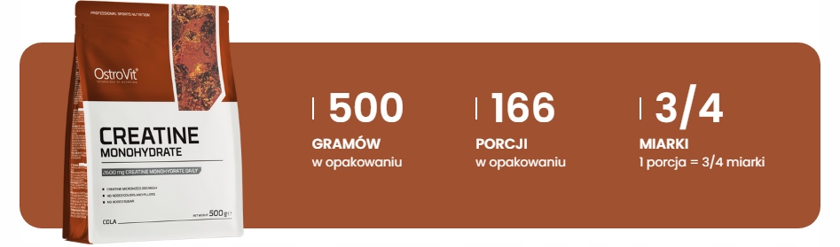 - 500 g monohydratu kreatyny w opakowaniu