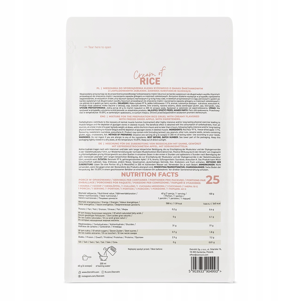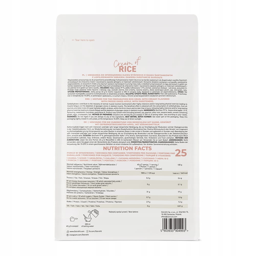 OSTROVIT Cream of Rice 1000g KREMOWE JABŁKO KLEIK RYŻOWY ENERGIA