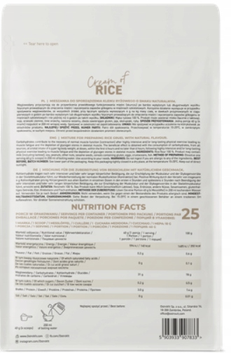 - WYSOKA ZAWARTOŚĆ WĘGLOWODANÓW - Dzięki temu, że pojedyncza porcja produktu to aż 31 gramów węglowodanów, kleik OstroVit Cream of RICE sprawdzi się u wszystkich osób aktywnych fizycznie. Spożycie produktu po treningu sprzyja odbudowie zapasów glikogenu.