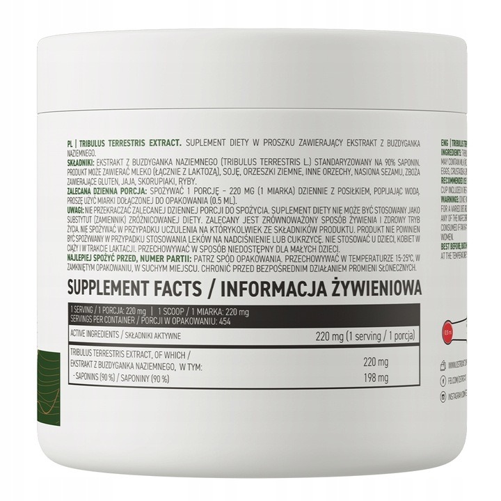 Składniki: Ekstrakt z owoców buzdyganka naziemnego (Tribulus terrestris L.) standaryzowany na 90% saponin.