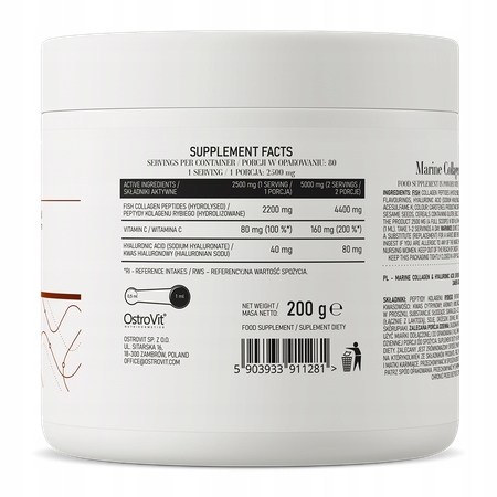 OSTROVIT KOLAGEN MORSKI RYBI TYP I KWAS HIALURONOWY WITAMINA C 200g PYSZNY