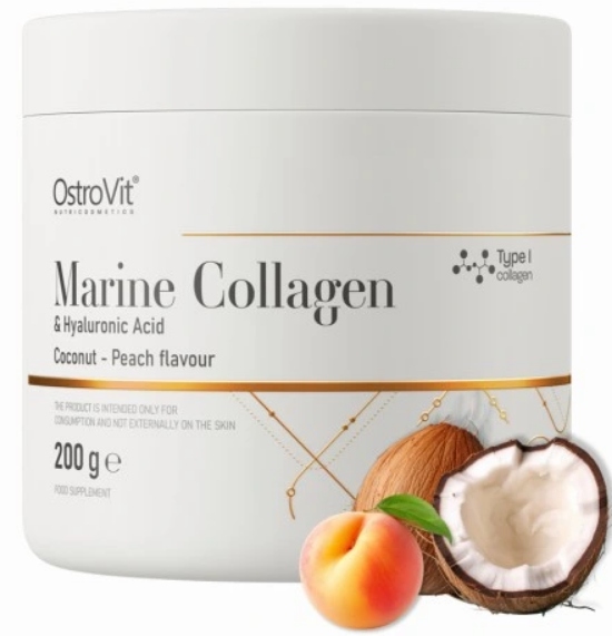 OstroVit Kolagen Morski + Kwas Hialuronowy + Witamina C to kompleksowy suplement diety, który zawiera trzy cenne składniki aktywne, takie jak kolagen morski typu I, kwas hialuronowy oraz witamina C. To preparat o wyjątkowym, kokosowo-brzoskwiniowym smaku, dostępny w wygodnej do spożycia formie proszku. To produkt, który świetnie sprawdzi się zarówno wśród sportowców, jak i osób, którym zależy na pięknym i zdrowym wyglądzie.