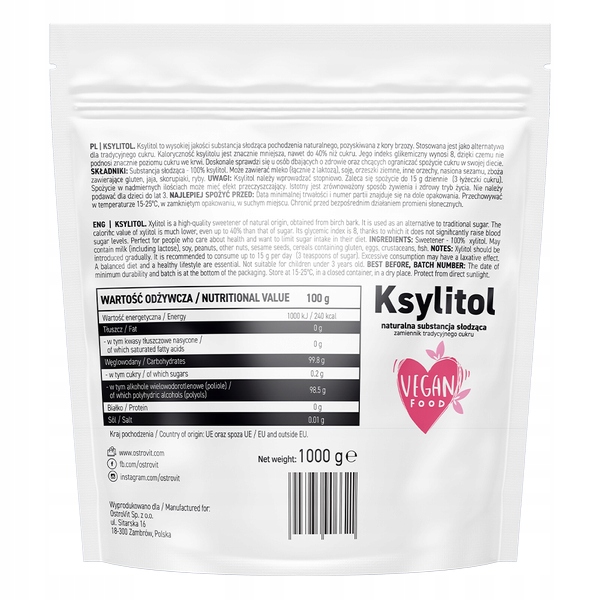 OstroVit Xylitol - Ksylitol alkohol wielowodorotlenowy