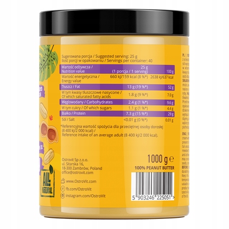 Głębia smaku, 100% satysfakcji i gwarancja najwyższej jakości -OstroVit 100% Peanut Butter.
