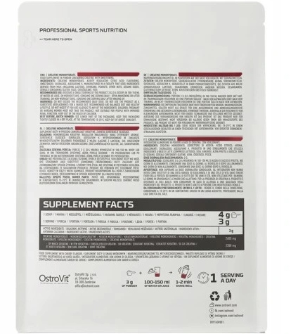 OstroVit Creatine Monohydrate to najwyższej jakości monohydrat kreatyny, który wielokrotnie potęguje anaboliczne, ergogeniczne i antykataboliczne działanie kreatyny.