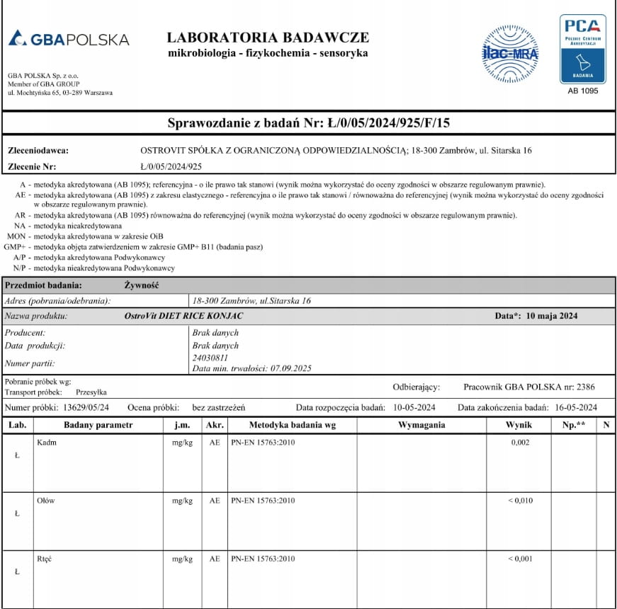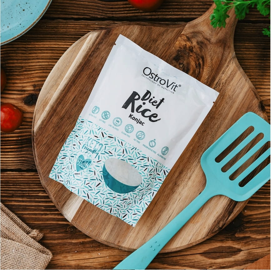 OstroVit Diet Rice Konjac w 100% ma pochodzenie roślinne, dlatego też jest odpowiedni dla wegan i wegetarian. To również produkt bezglutenowy, dzięki czemu, mogą wykorzystywać go w kuchni do przygotowywania ulubionych potraw osoby ciepiące na nietolerancję glutenu lub alergię.