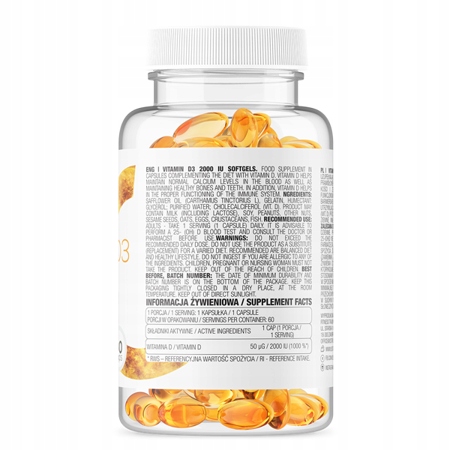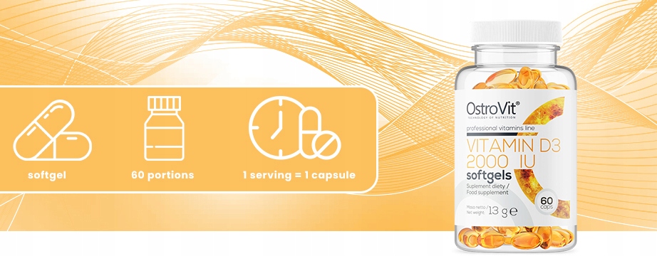 OstroVit Vitamin D3 2000 to najwyższej jakości preparat kapsułkowany w wysoce wchłanianej postaci softgelowej,