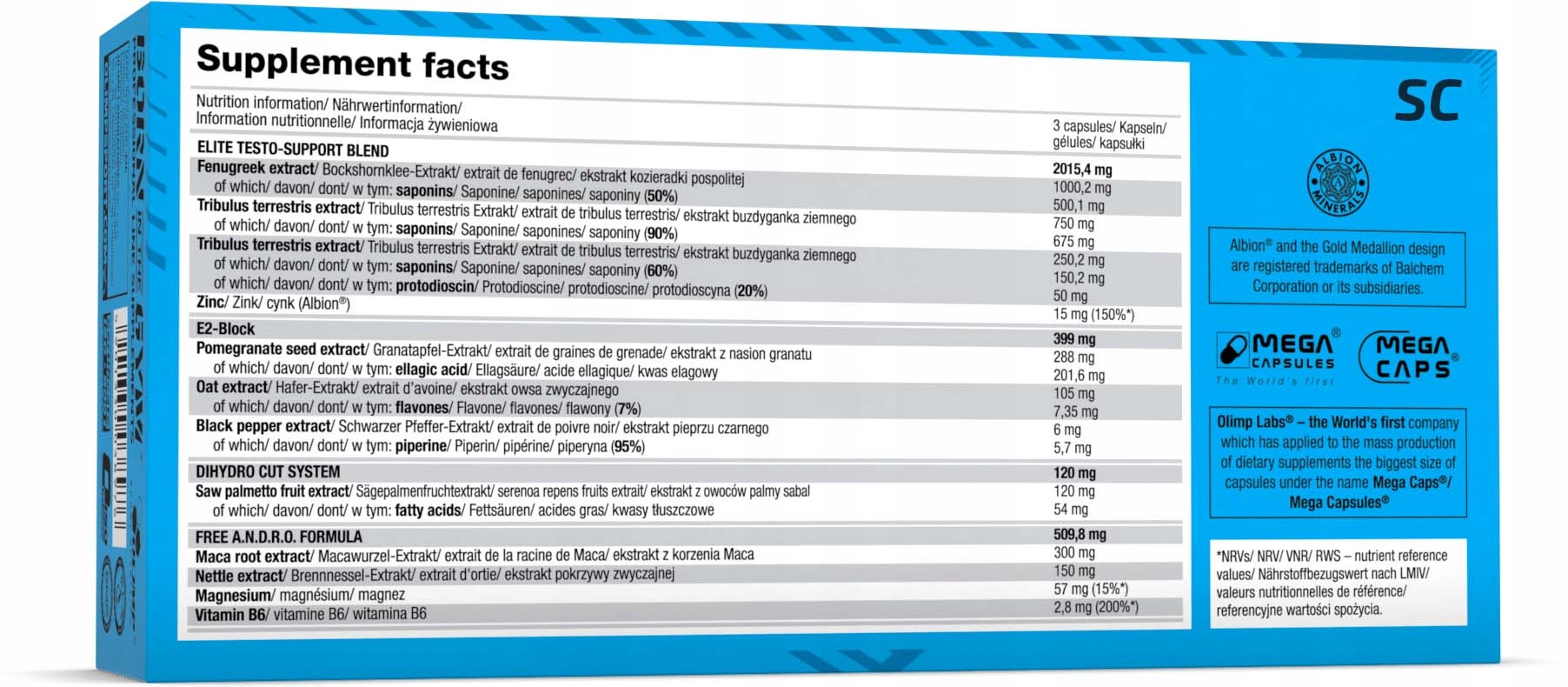 Całość blendu została dodatkowo uzupełniona o doskonale przyswajalny chelat aminokwasowy (bisglicynian) cynku. Jak wiadomo pierwiastek ten przyczynia się do utrzymania prawidłowego poziomu testosteronu we krwi. Ponadto wydaje się być inhibitorem dwóch ważnych dla metabolizmu testosteronu enzymów: aromatazy – przekształcającej testosteron w estradiol oraz 5-α-reduktazy przekształcającej testosteron w DHT.