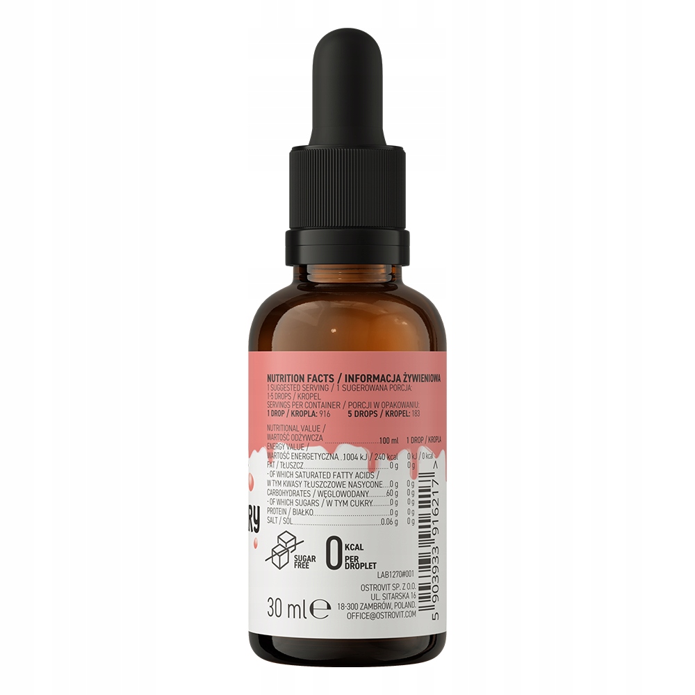 OstroVit Aromat Dodatek Spożywczy Truskawkowy 30ml KROPLE SMAKOWE BEZ CUKRU