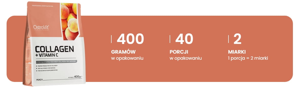 Odżywka OstroVit Collagen + Vitamin C składa się z dwóch aktywnych składników, które wspólnie się uzupełniają, a suplementacja ich idealnie wspomoże działanie naszego aparatu kostno-stawowego, zapewni utrzymanie mięśni i prawidłowego funkcjonowania chrząstki stawowej.
