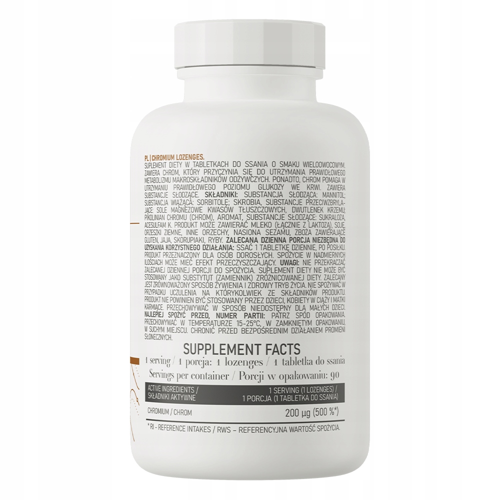 OstroVit Chrom do ssania 90 tabletek 200 ug PIKOLINIAN CHROMU