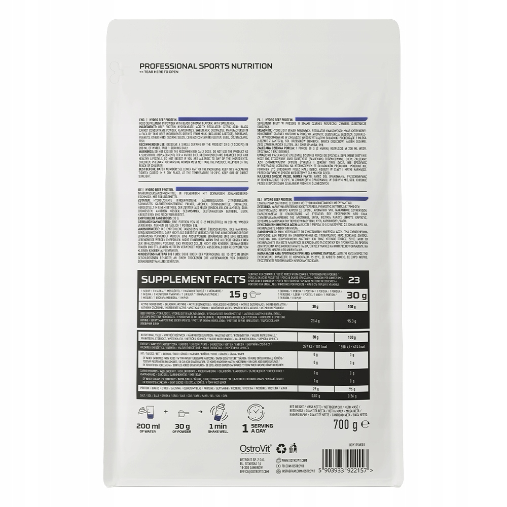 OstroVit Hydro Beef Protein 700 g BIAŁKO WOŁOWE AMINOKWASY Mięśnie PORZECZK