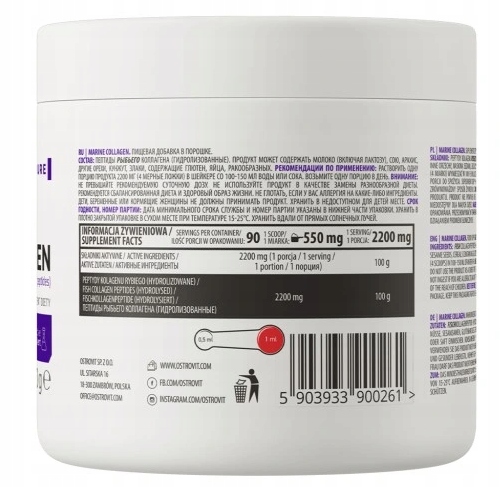 Wykorzystany w preparacie OstroVit kolagen morski typu I to źródło hydrolizowanych peptydów kolagenu rybiego, których struktura przypomina kolagen ludzki. To sprawia natomiast, że substancja wyróżnia się świetną przyswajalnością w ludzkim organizmie i działa skuteczniej niż inne formy związku. OstroVit Kolagen Morski to produkt, który oprócz bogactwa cennego składnika, wyróżnia się także wyjątkowym smakiem, dzięki czemu stanowi pyszne i wartościowe uzupełnienie codziennej diety.