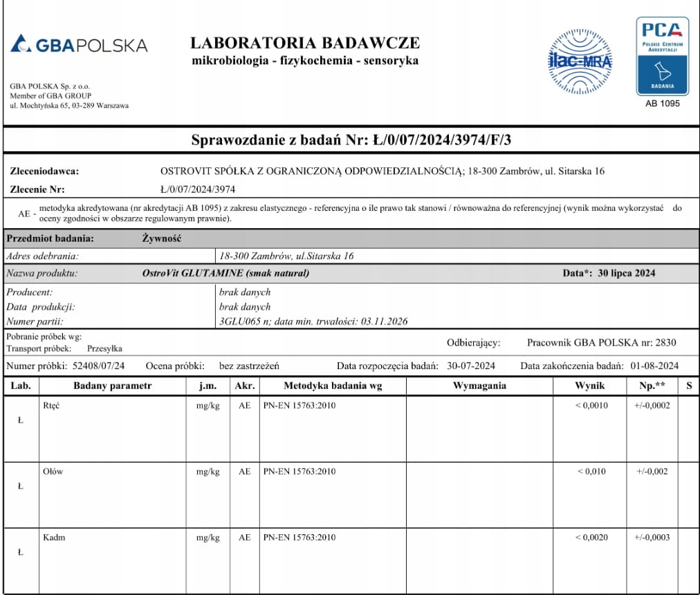 OstroVit Glutamina - cenne źródło